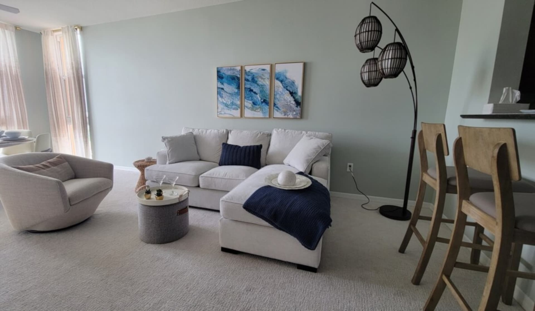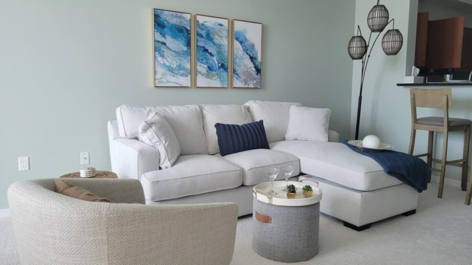 This beautiful one-bedroom unit includes all utilities and all furniture that you see in photos. (Sleeps up to 4). The beautiful and inviting kitchen is fully-stocked with all appliances, cook-wear and cutlery and features granite counters, European cabinetry, and a breakfast bar. The living room/dining room space is bright and airy featuring high-end furnishings, a Queen-sized pull-out sofa, and a large screen smart TV. The furnished balcony is a great place to take your morning coffee or to relax under the stars.