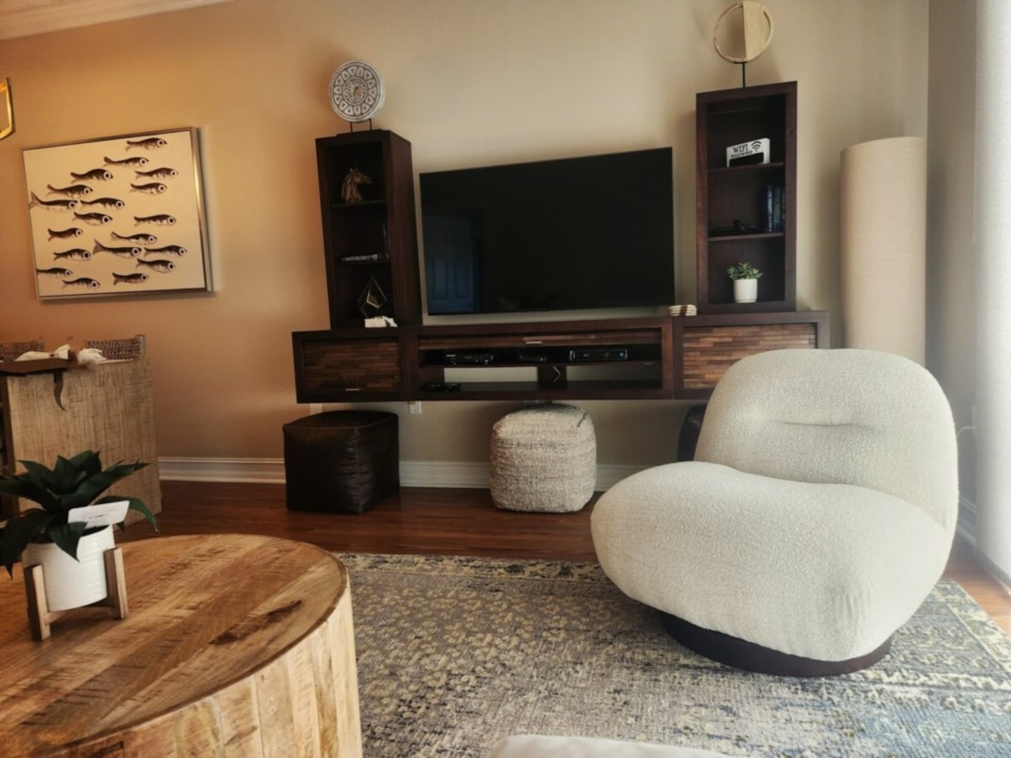 Your Master Bedroom is a haven of comfort, featuring a luxurious King-sized bed, high-end linens, a spacious dresser, and a convenient walk-in closet. The Bathroom indulges with a deep soaker tub, shower, and modern elegant vanity.