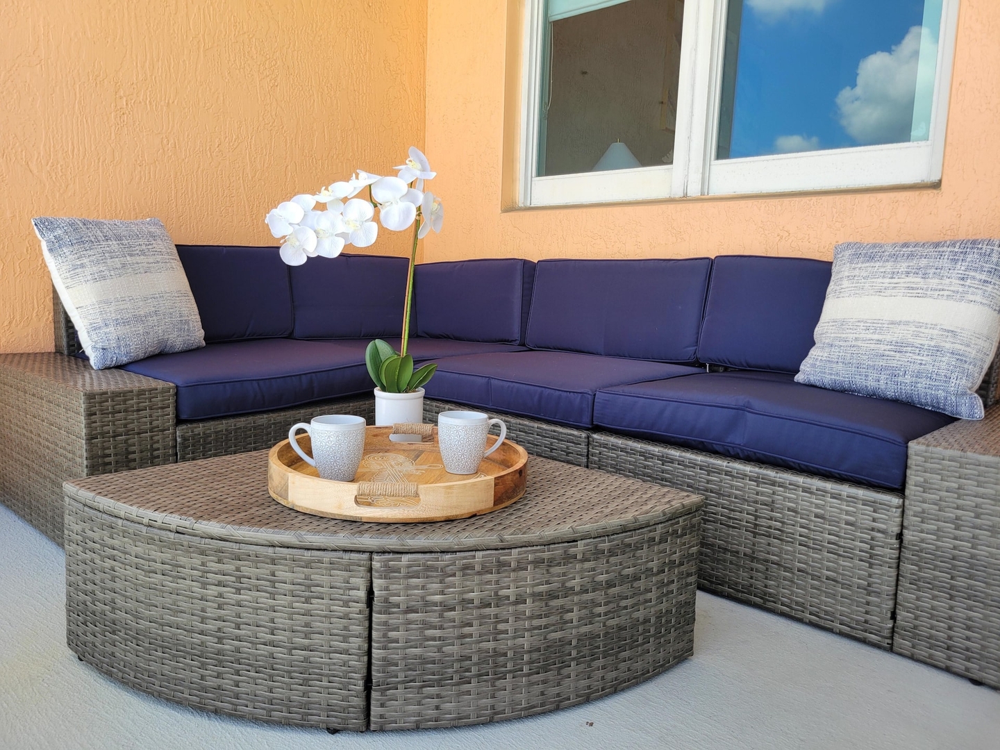 The Master Bedroom boasts a comfortable King-sized bed, high-end linens, large bureau, and walk-in closet. The Master Bathroom features a deep soaker tub with shower and double vanities. The second bedroom features two twin single beds. The washer/dryer are enclosed in their own room and will take the hassle out of washing your beach wear! Hurricane Windows are up to code and will keep you safe and secure.