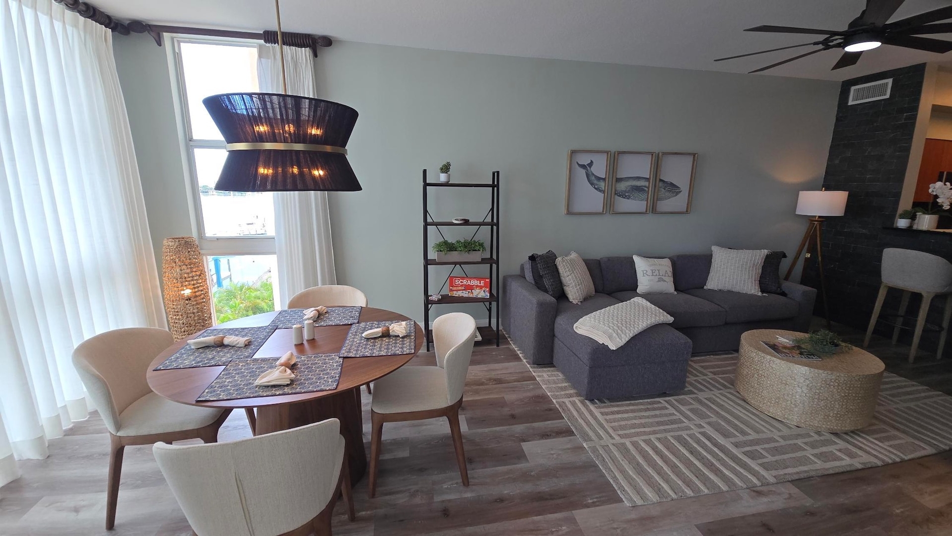 This beautiful one-bedroom unit includes all utilities and all furniture and sleeps up to 4. The up-dated kitchen comes complete with all the cookware, appliances and utensils to create meals and indulge. The luminous living room and dining area are furnished for relaxation, featuring comfortable seating and a large smart TV for entertainment. A beautiful new sectional couch with chaise and pull-out Queen bed allows you to accommodate visitors with ease. Step out onto your private balcony as the perfect spot to savor your morning coffee or to gaze at the stars while enjoying the marina's allure.